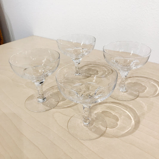 Vintage Crystal Coupe Glasses with Faceted Stems