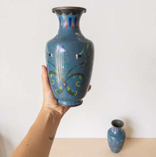 Pair of Early 19th Century Cloisonné Vases with Floral Motifs
