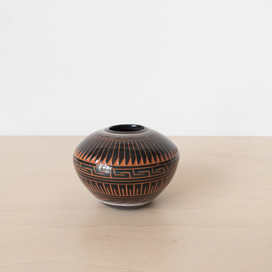 Vintage Studio Pottery Bud Vase with Incised Greek Motifs