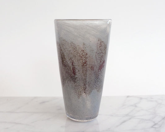 Mid-Century Modernist Handmade Speckled Gray Art Glass Cup Vase