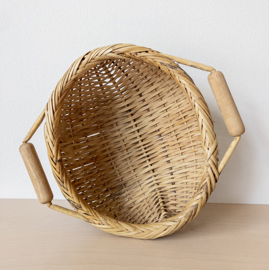 Vintage Natural Cane Oblong Woven Basket with Two Handles